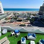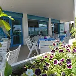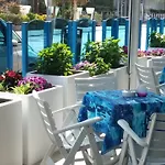 A Riccione városi Rosalba teraszt és kertet kínál a kellemes időtöltés érdekében.